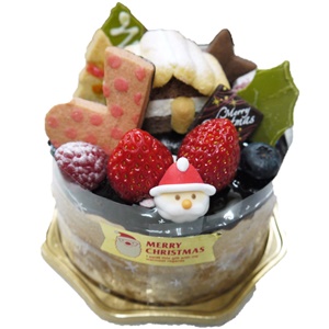 手作りのスポンジハウスとクリスマスクッキーのデコレーション付きです。